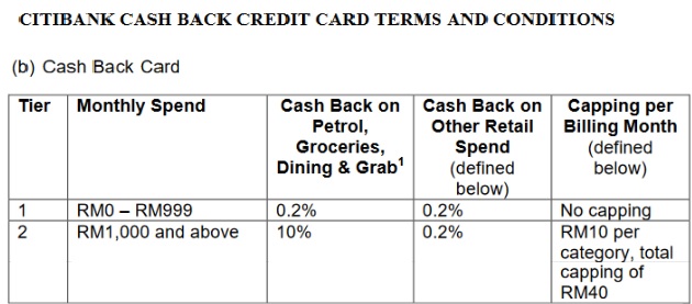 Citibank Cash Back Terms and conditions 2018