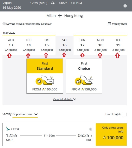 CX 1st Milan to HKG