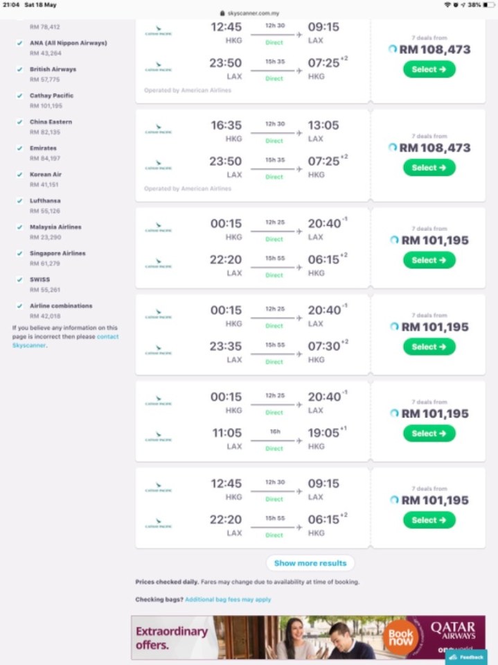CX First HK LA Price