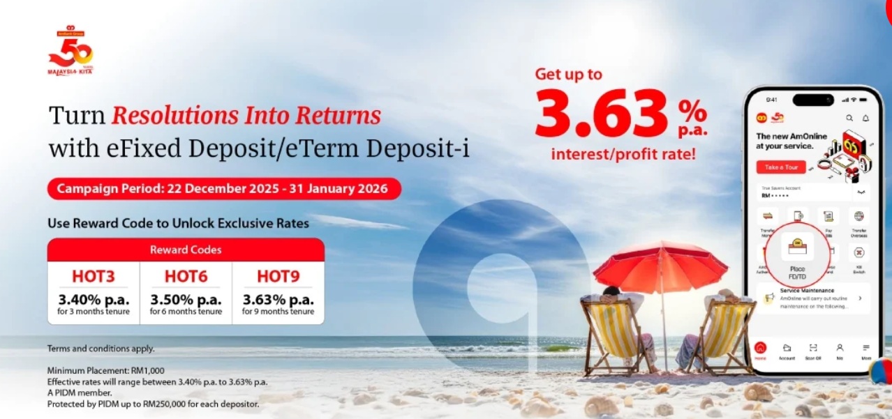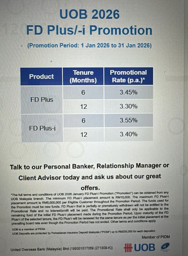 Fixed Deposit Promos AmBank eFD until end Jan 2026 Click/tap on Page 7 button below for UOB FD Promo and my comments. << Page 5 >> Page 7 Share this: Click to email a link to a friend (Opens in new window) Email Click to share on Facebook (Opens in new window) Facebook Click to share on Reddit (Opens in new window) Reddit Click to share on X (Opens in new window) X Click to share on Tumblr (Opens in new window) Tumblr Click to share on Pinterest (Opens in new window) Pinterest Like Loading... Pages: 1 2 3 4 5 6 7