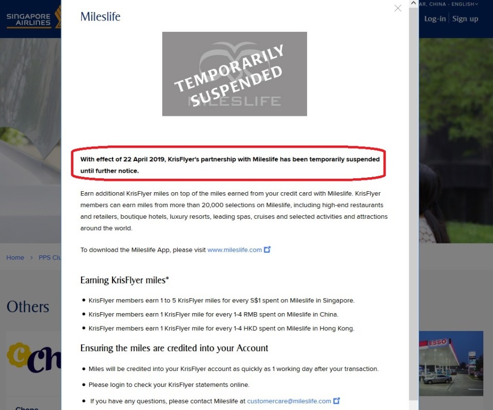 KrisFlyer Mles MilesLife Temporarily Suspended 2019