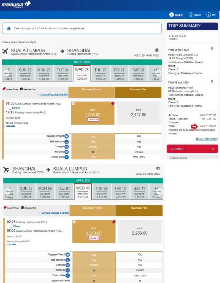Malaysia Airlines Business Class Cheap to China Shanghai