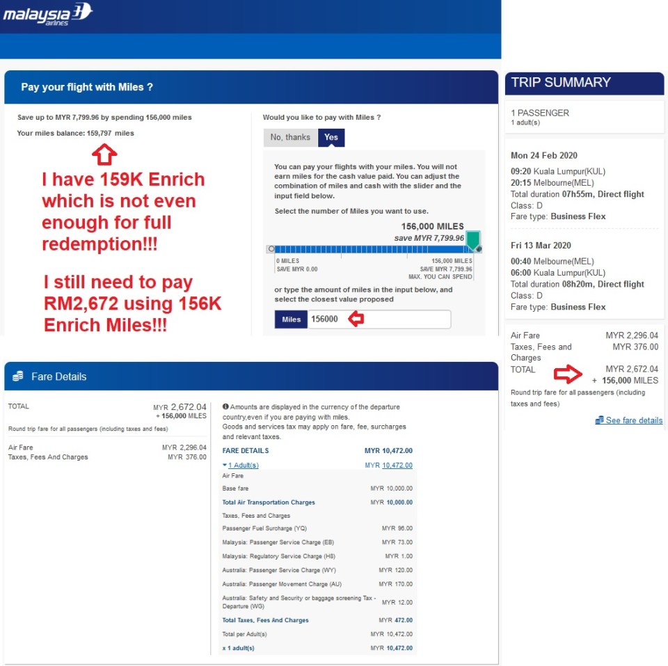 MAS Cash and Miles Business Class Return Melbourne