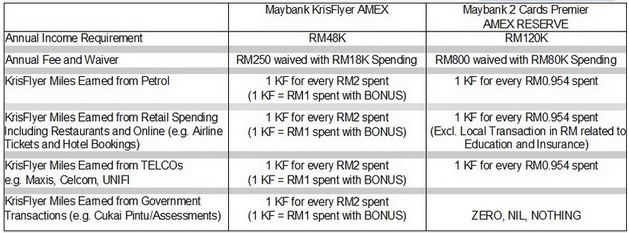 Maybank AMEX KrisFlyer vs Maybank 2 Cards Premier 2018