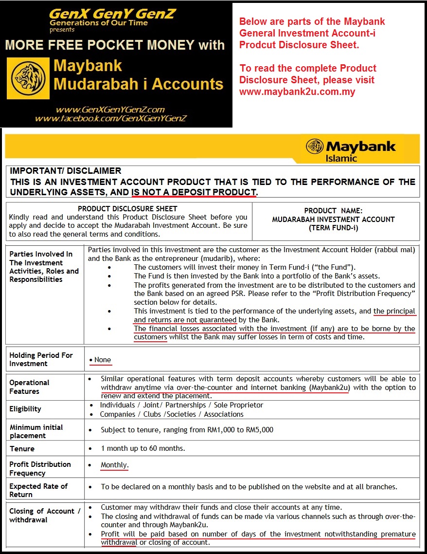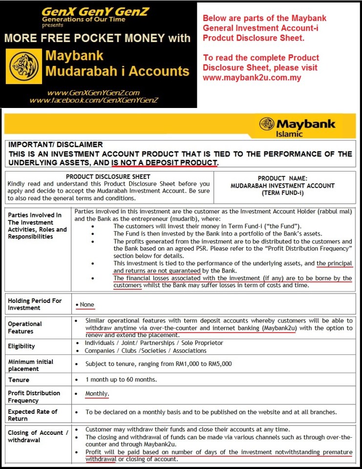 Maybank General Investment Account i GIA i Product Disclosure Sheet
