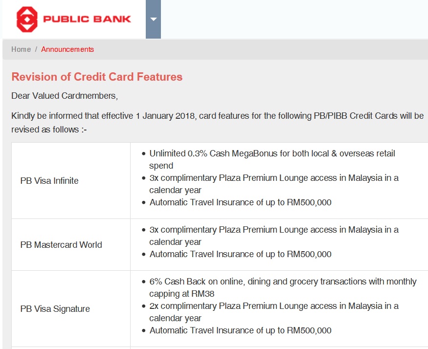 Public Bank Credit Card Benefits 2018