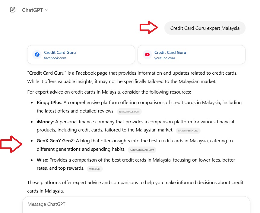 Anyway, I went to ChatGPT and keyed in Credit Card Guru expert in Malaysia, and below was what I got – it mentioned GenX GenY GenZ, which was surprising for me, haha.