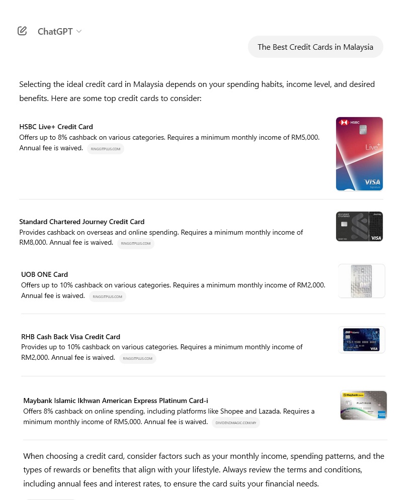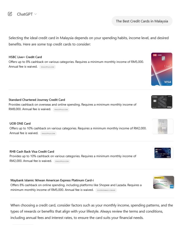 Credit Card Experts in Malaysia and The Best Credit Cards According to ChatGPT February 2025