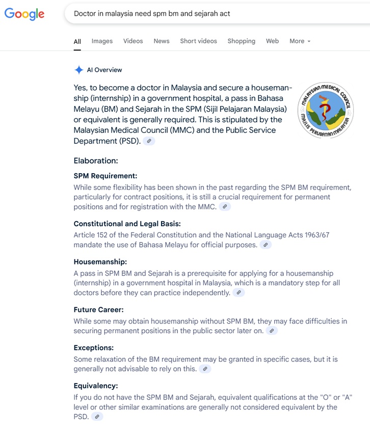 In order to be able to practice as a medical doctor in Malaysia, not only does one need SPM BM but they also need Sejarah!!! Below is what I got when I googled: