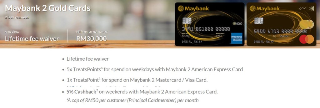 The Maybank 2 Gold/Platinum Cards AMEX is one card you should have regardless if you are earning RM36K or RM200K per year and the most important thing of all – IT IS FREE FOR LIFE WITHOUT ANY CONDITION.