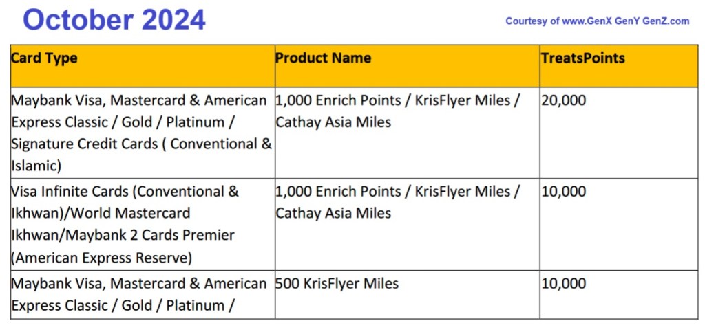 If you would like to learn more about Maybank Treats Points TnC for Air Miles Redemption, please click here to my article titled Revision To Maybank Air Miles Redemption TnC Effective 12th April 2024 β You Better Plan Ahead Because Only You Are To Be Blamed If You Canβt Redeem A First Class Ticket When You See It Because You Were To Greedy Worrying About Expiry And Not Having Them On Standby.