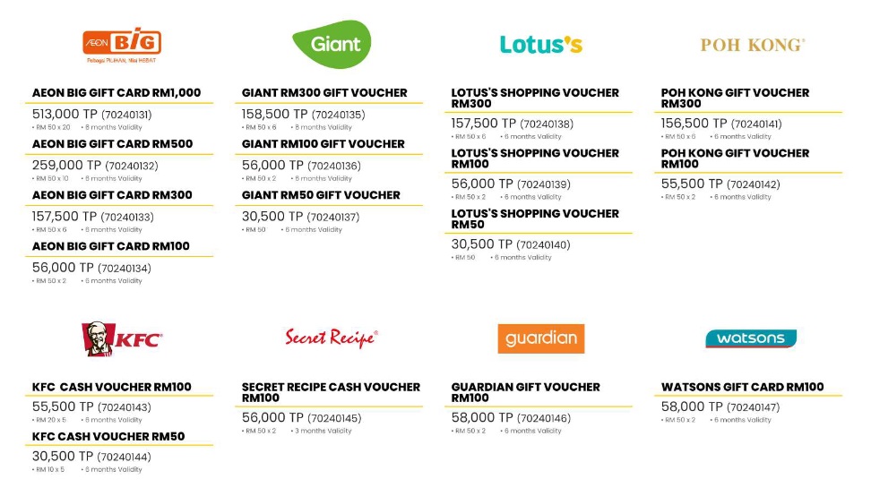 Example No.2 – Cash Voucher. You need 513K TP to redeem RM1K AEON Big Voucher.