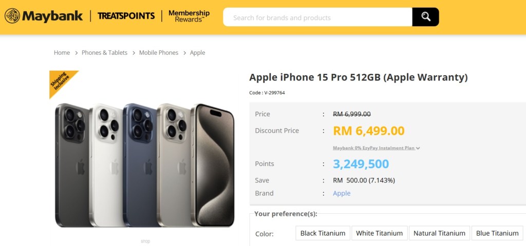 Example No.1 – you can use 3,249,500 Treats Points to redeem an Apple iPhone 14 Pro which us valued at RM6,499.