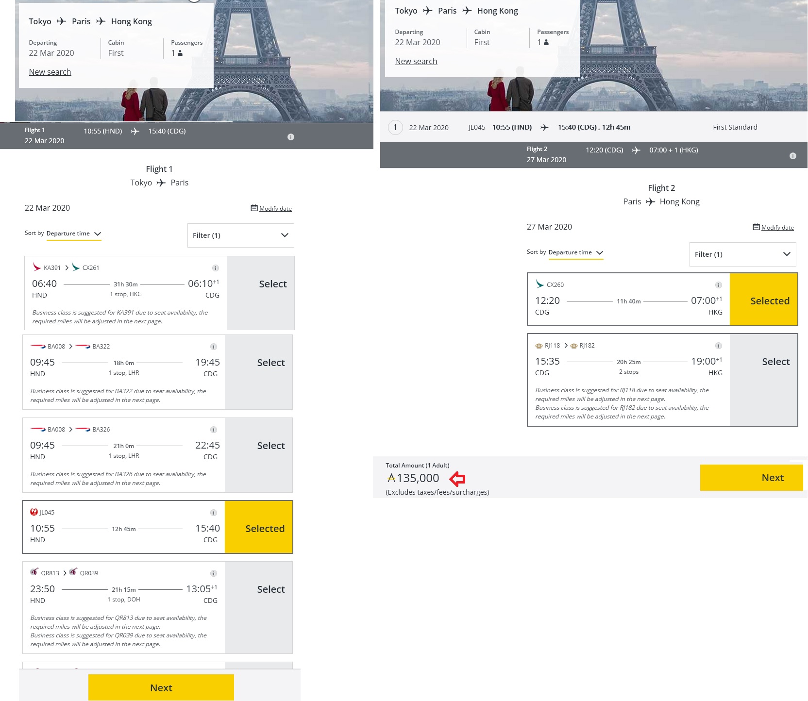Tokyo Paris Hong Kong First Class