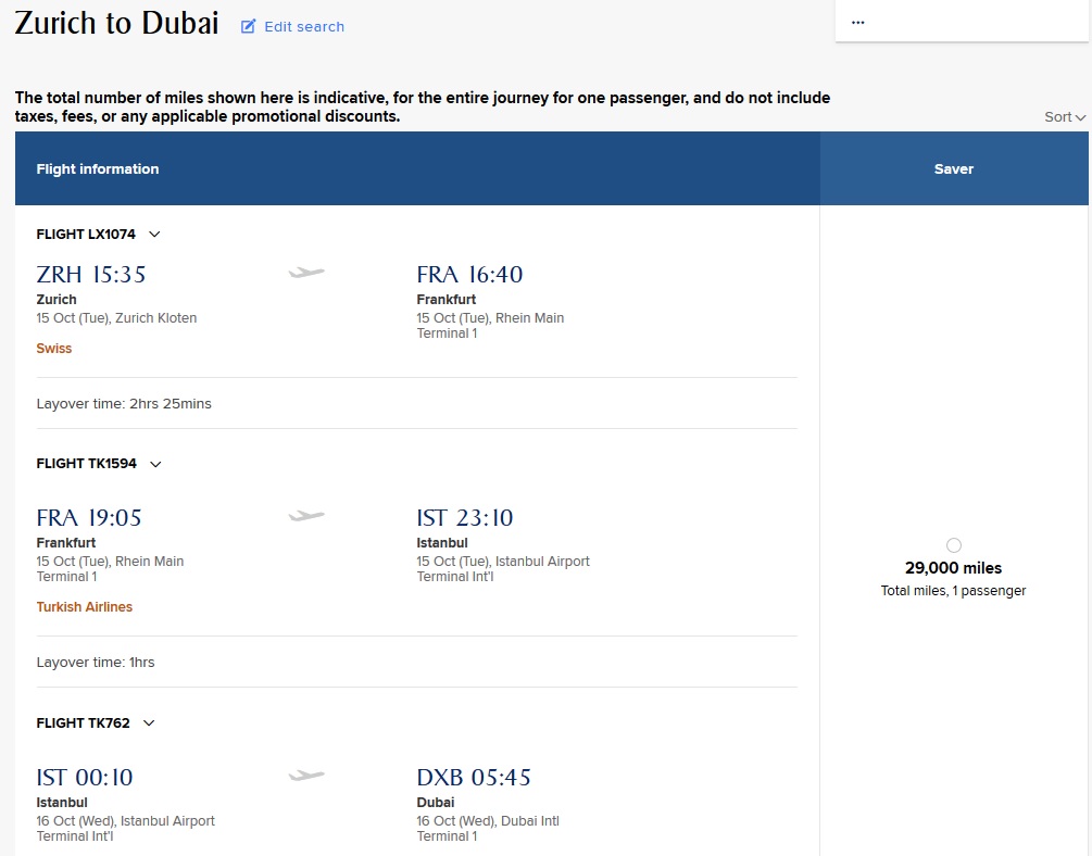 Zurich to Dubai